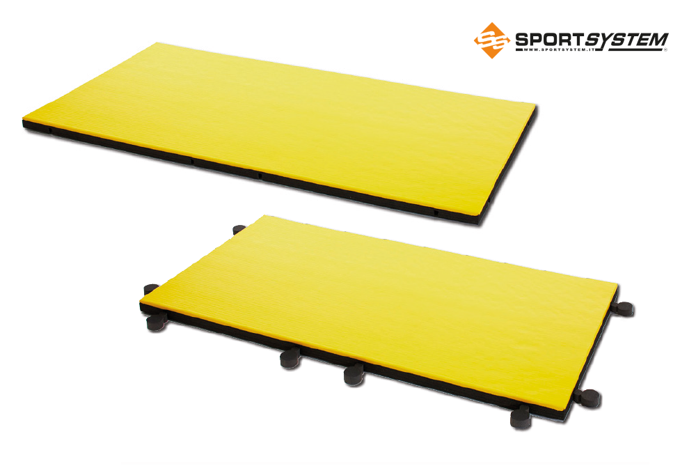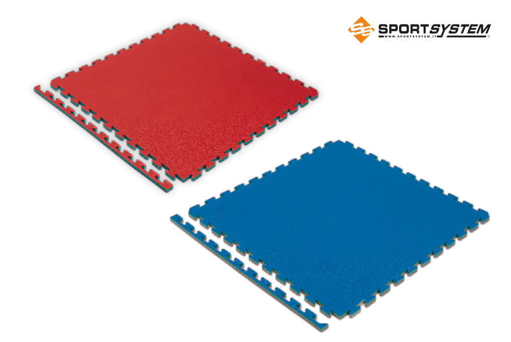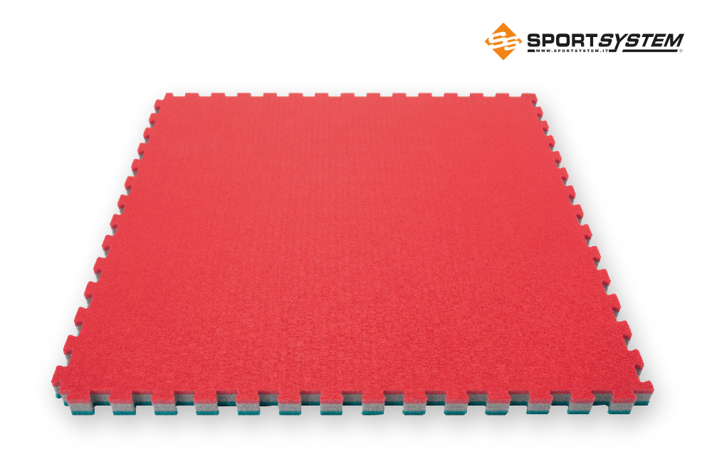 Tatami per judo ad incastro. Realizzato in polietilene stampato a 3 colori, con dimensioni cm 100x100x3,5 ed incastri a coda di rondine su tutti e quattro i lati.