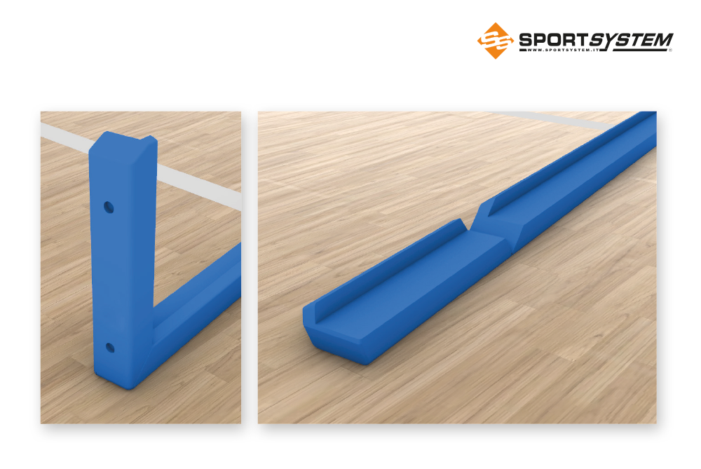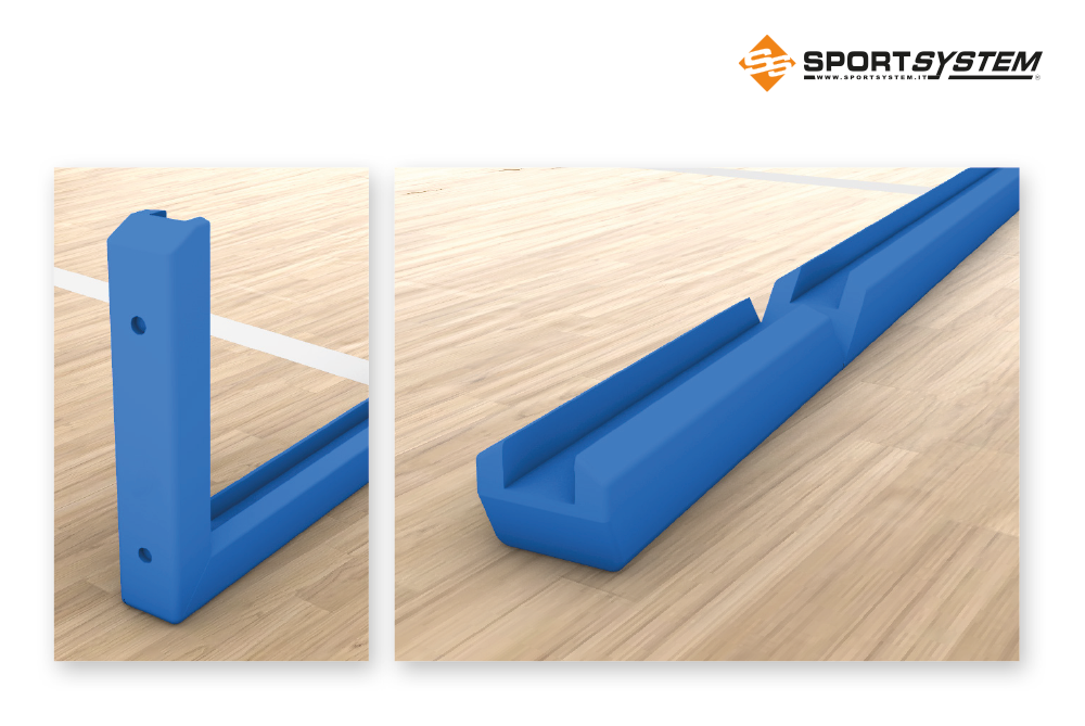 Protezione di poliuretano da applicare con viti sul telaio del tabellone basket di misure regolamentari cm 180×105, modello ad L – NEW DESIGN. Disponibile in più colori e con possibilità di personalizzazione mediante incisione di un logo.