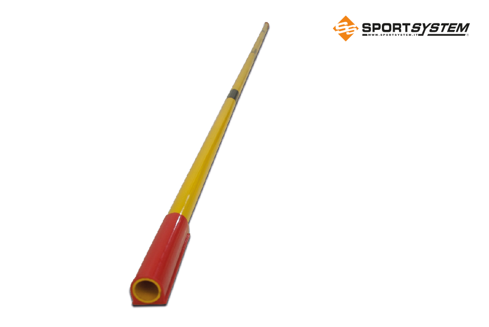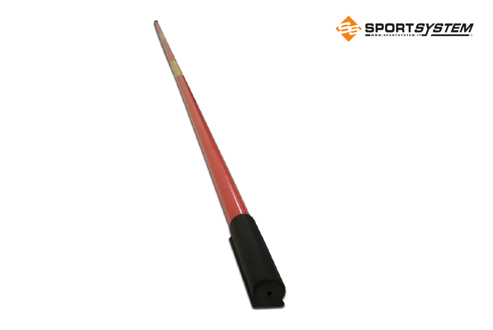 Coloured fibreglass pole vault crossbar, circular section, plastic ends, length 4.50 mt. Model suitable for competitions.